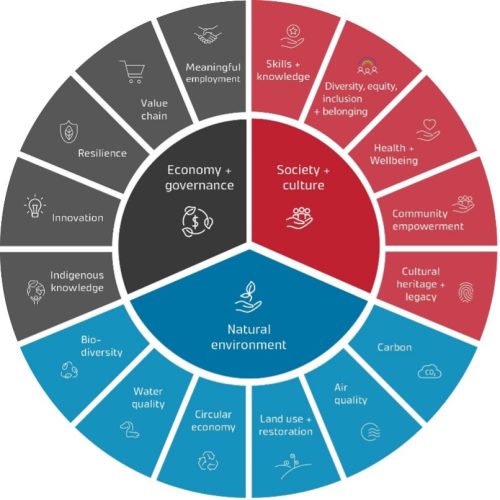 Our Sustainability Framework identifies the outcomes we influence through the work we do and in our operations. The Framework draws on the United Nations’ Sustainable Development Goals, government and indigenous wellbeing frameworks, and infrastructure sustainability tools. We use this Framework to inform our understanding of our impacts and the dependencies between them.